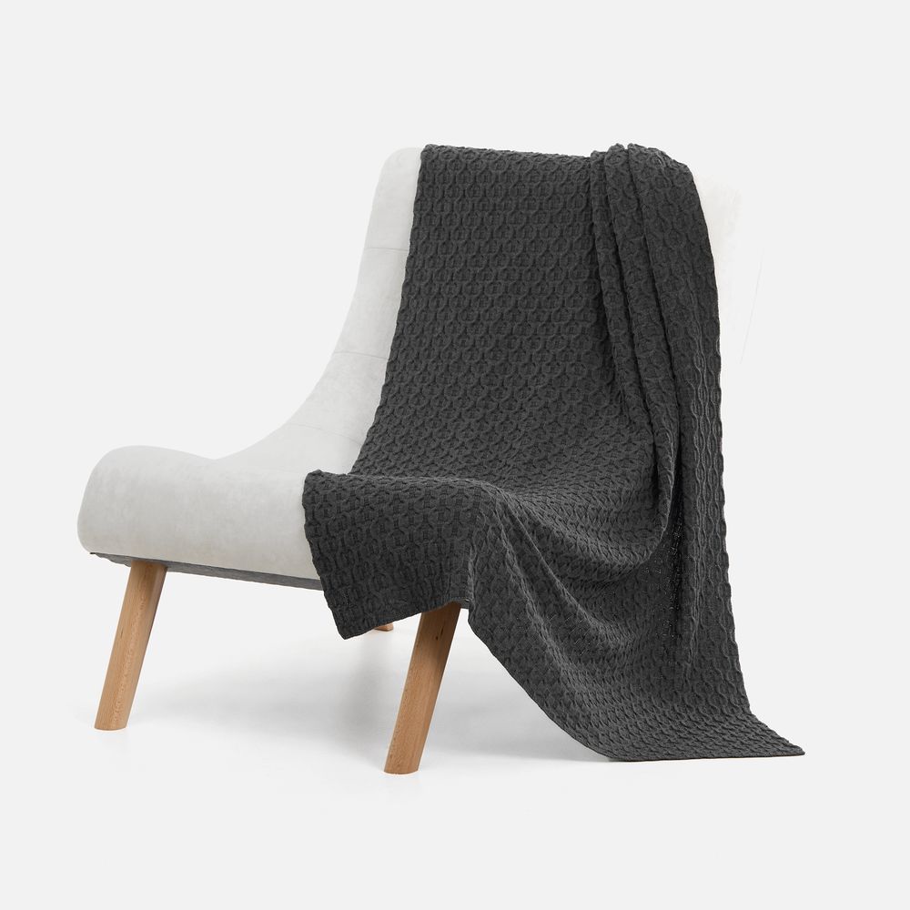 Глубина рельефного орнамента добавляет динамику даже в монохромном исполнении. Плед Braidera — удачное сочетание декоративной выразительности и уютной функциональности.