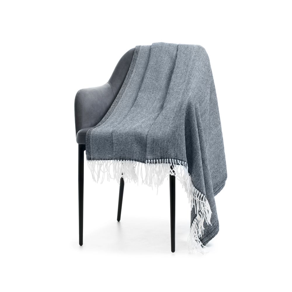 Классический рисунок «елочка» не слишком привлекает внимание, но в то же время добавляет изюминки. Смешанный состав пряжи продлевает срок службы и существенно облегчает уход за пледом.