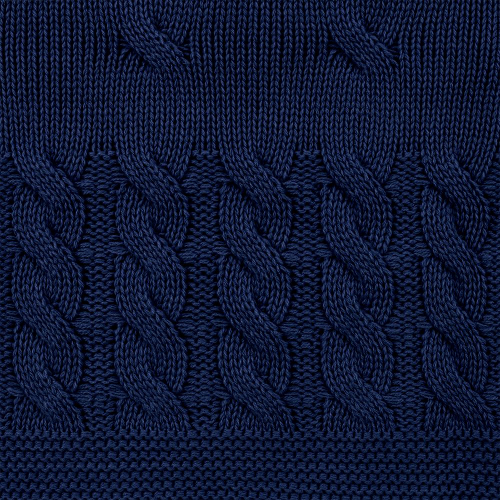 Модель: однотонный плед с фактурной вязкой, которая позволяет сделать его воздушным и объемным. Чередуя различные типы петель на гладком полотне, можно вывязать любую графику — логотип, текст, товарный знак.
