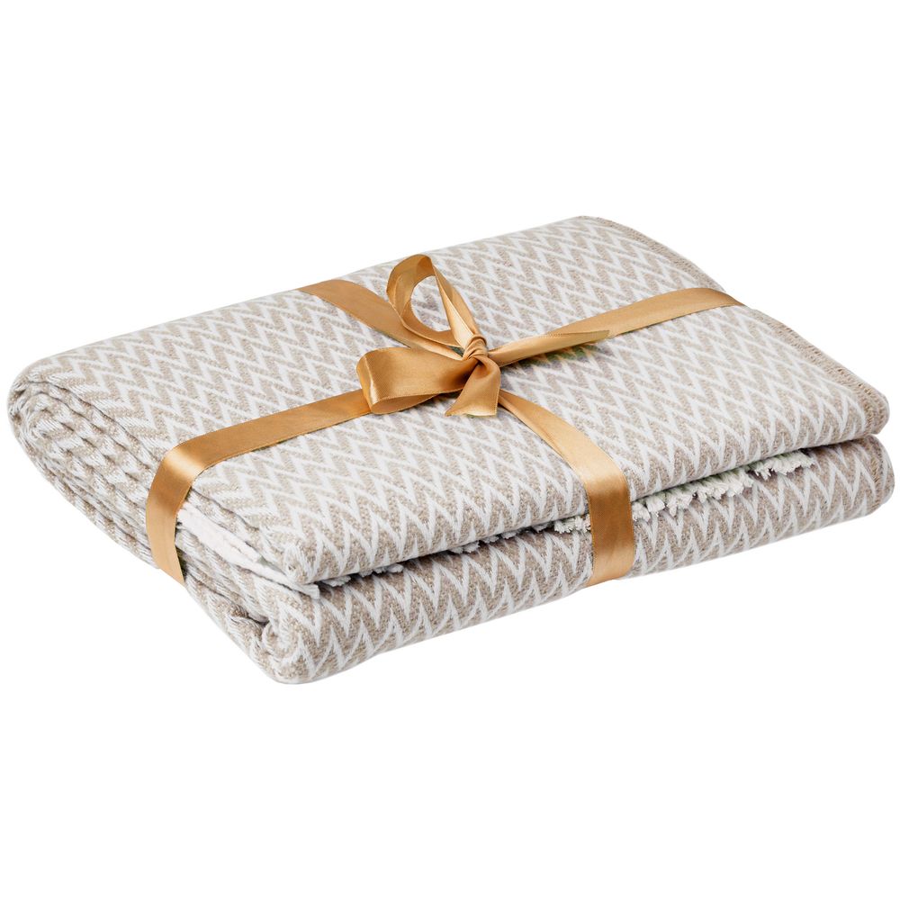 Плед Sagunt с ненавязчивым зигзагообразным узором и аккуратной бахромой подарит мгновения уюта и радости, порадует своим нежным дизайном и окутает теплом.