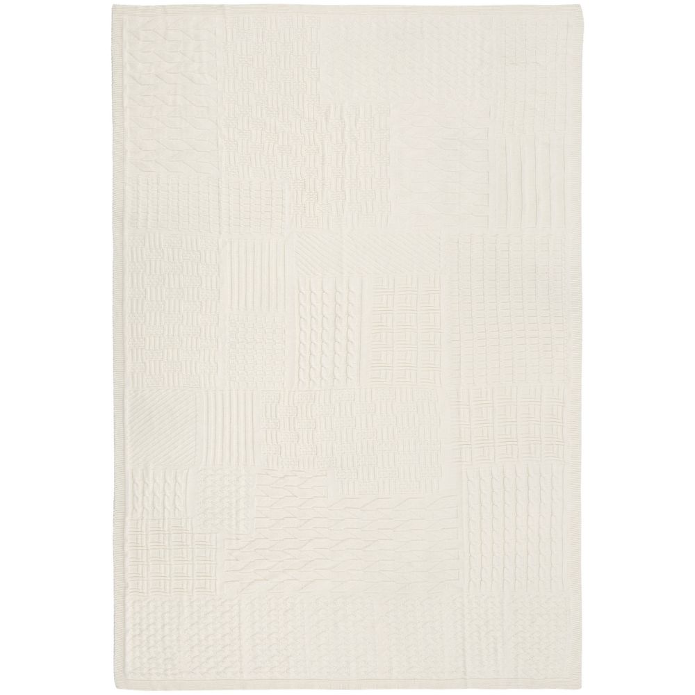 Плед фактурной вязки с орнаментом в стиле пэчворк — не совсем отдельные лоскутки, но гармоничное сочетание разных узоров.