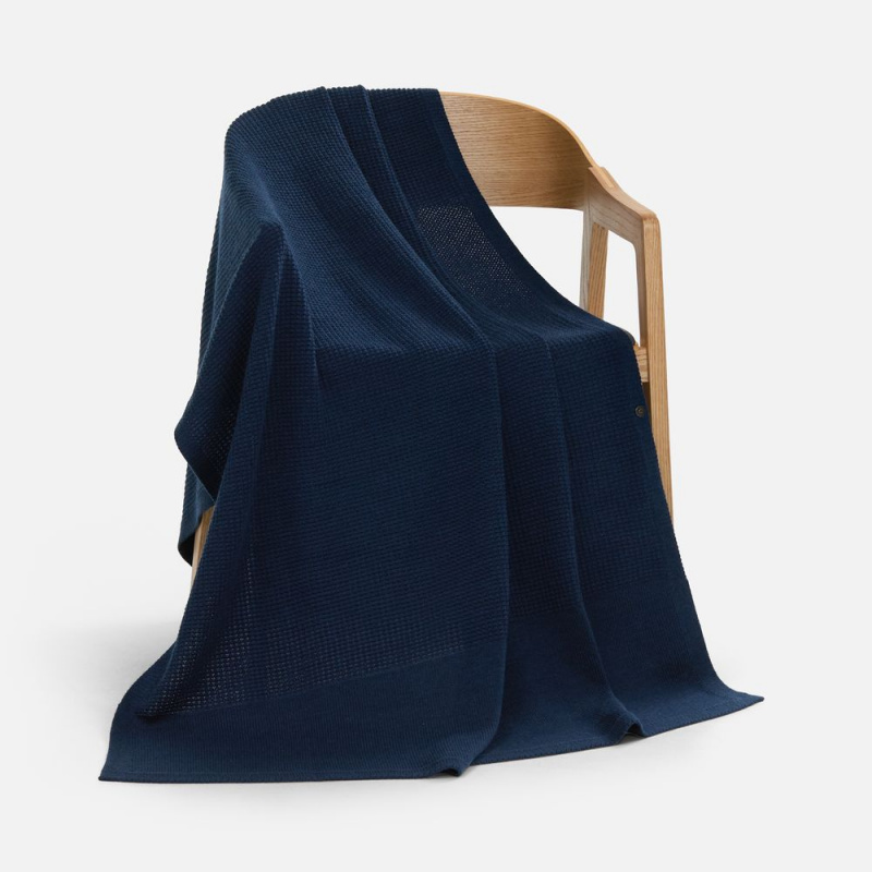 Плед Voyage соткан из мягкого сочетания шерсти и акрила — нежный, теплый и невесомый, он идеален для уютных вечеров. Кнопка позволяет превратить его в элегантную накидку, когда воздух становится прохладнее.