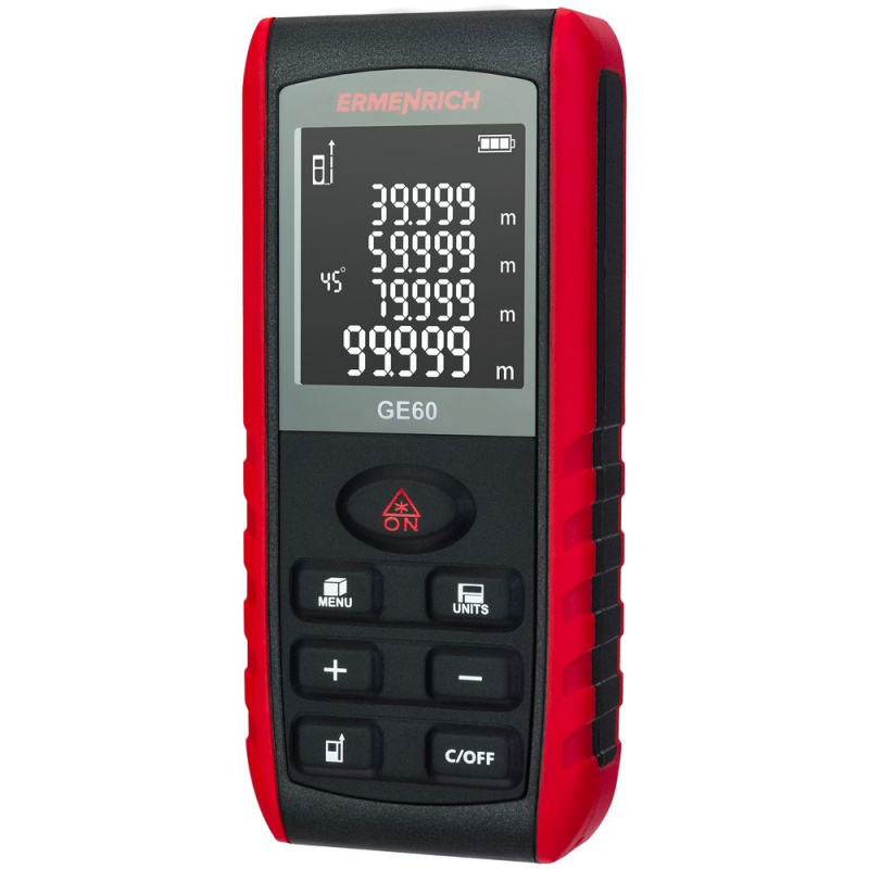 Ermenrich Reel GE60 — лазерная рулетка для самого широкого применения при измерении линейных размеров, площадей и объемов помещений, зданий и сооружений.