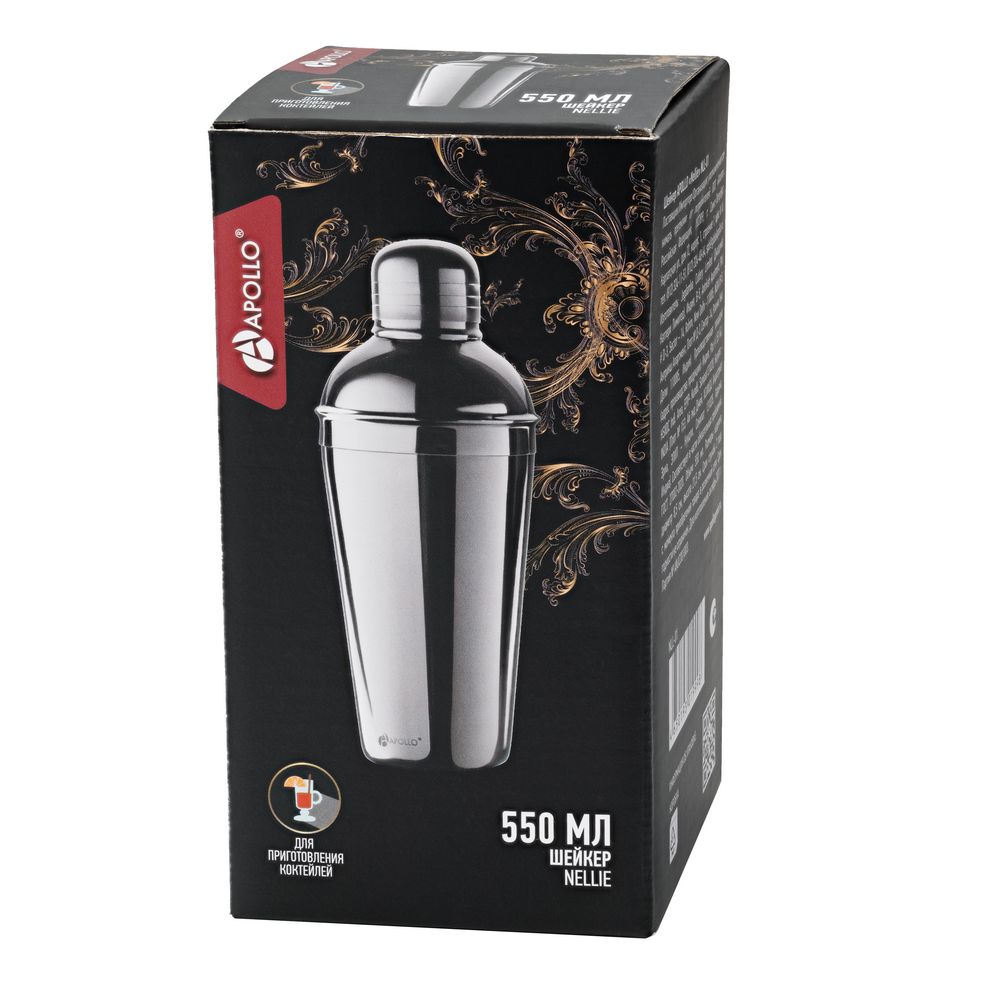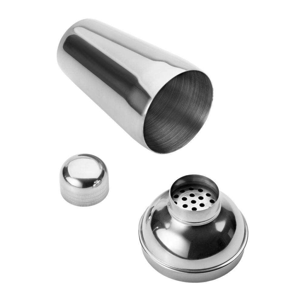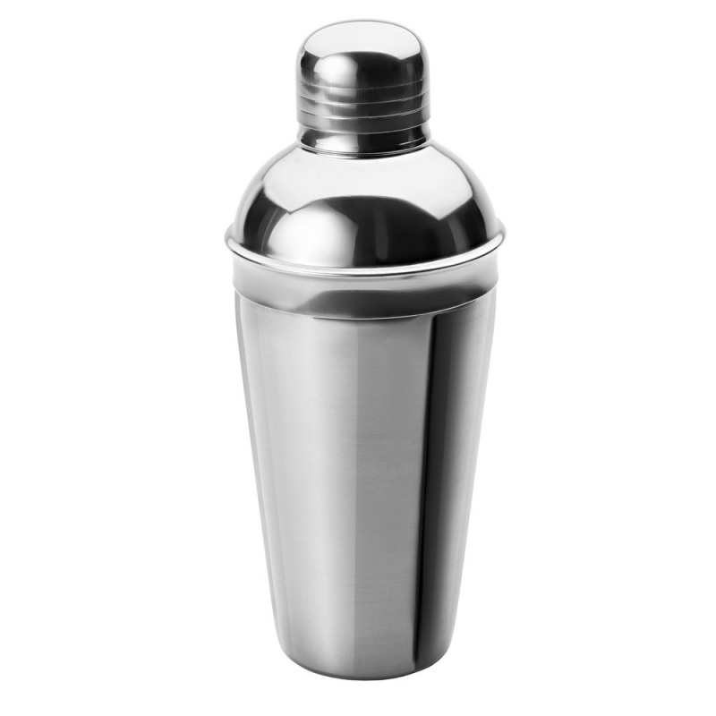 Классический шейкер для приготовления алкогольных и безалкогольных коктейлей и других смешанных напитков, например, холодного кофе фраппе или спортивного питания с протеином. Выполнен из нержавеющей стали и снабжен ситечком для фильтрации.