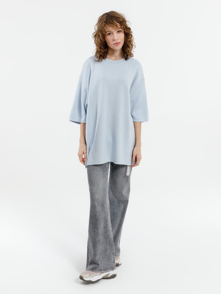 Siluetti Volumica — плотный вязаный джемпер-футболка прямого кроя с круглым вырезом и спущенной линией плеча. Фирменная бирка из силиконовой ленты станет интересной деталью, привлекающей внимание на фоне общей лаконичности модели.
