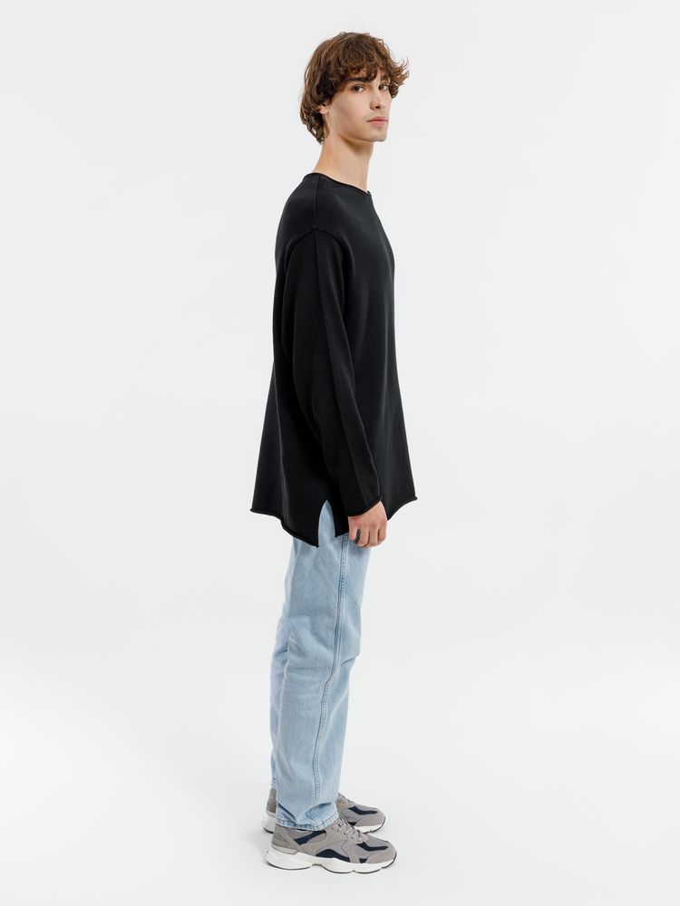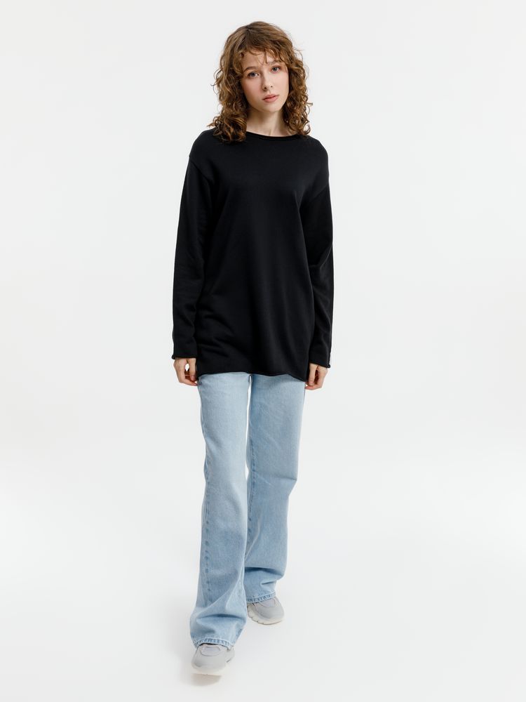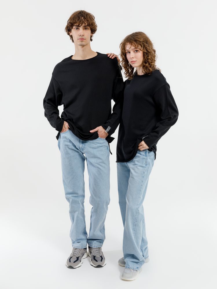Лонгслив Fuori средней плотности с широким воротом, спущенной линией плеча и свободно подворачивающимися краями по низу, на рукавах и вороте, которые добавляют модели еще большей расслабленности. Прозрачная бирка с логотипом бренда на рукаве не нарушает минималистичности образа.