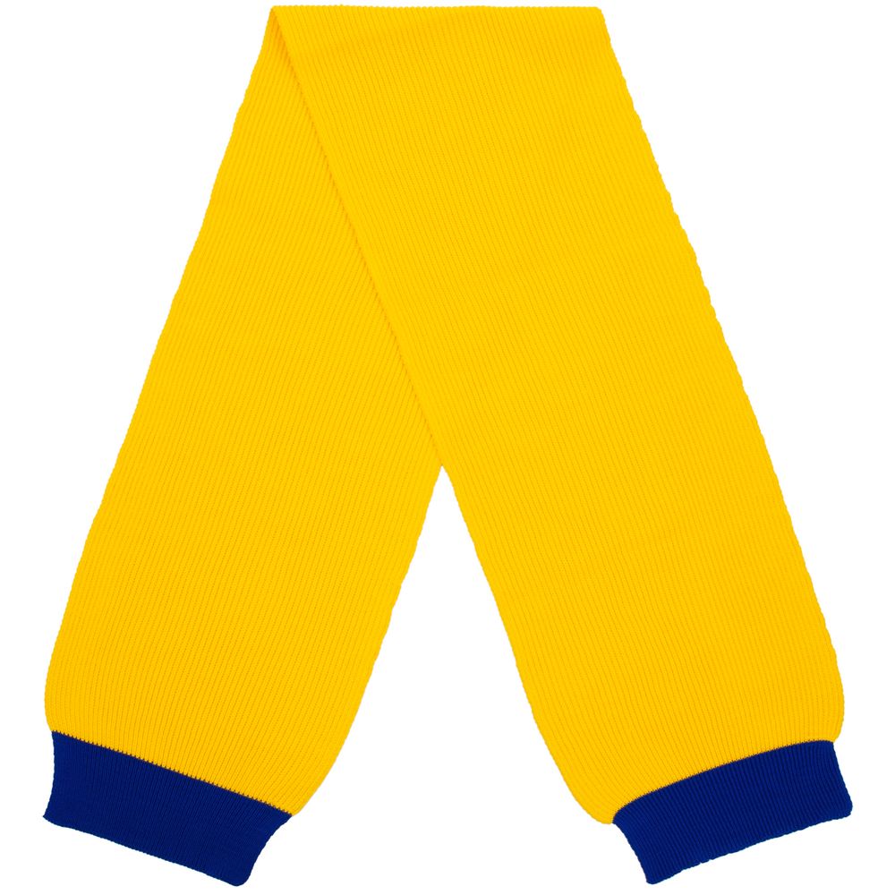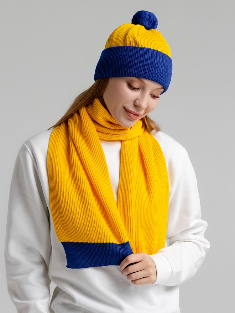 Двухслойный шарф фактурной вязки с контрастной отделкой.
