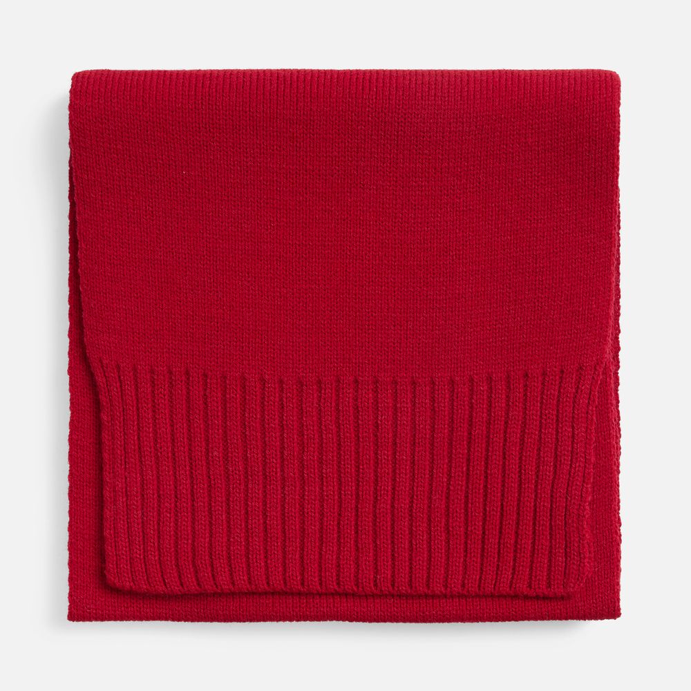Классический однослойный шарф гладкой вязки. Края, связанные резинкой, придают изделию завершенный и аккуратный вид.