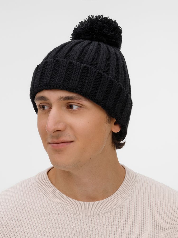 Шапка HappyGo с отворотом выполнена крупной резинкой из мягкой акриловой пряжи, которая создает объем и дарит тепло. Пышный помпон сразу создает запоминающийся зимний образ, добавляя ему игривости и легкости.