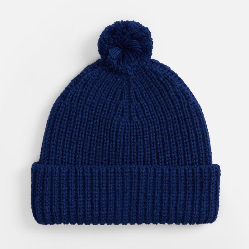 Однослойная шапка из высокообъемной пряжи с помпоном.