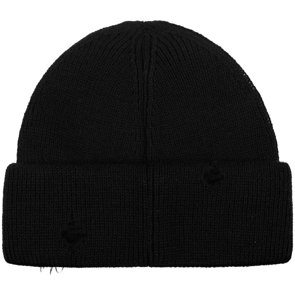 Однослойная шапка бини с рваным отворотом и металлическими аксессуарами для дерзких образов в любом возрасте. Яркий и запоминающийся акцент в стиле гранж.