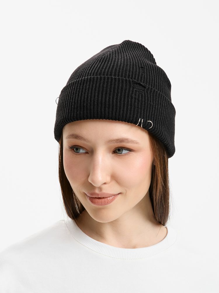 Шапка Ribelle — это практичная двухслойная модель из акрила, которая сочетает в себе уют с трендовым дерзким дизайном. Ее регулируемый отворот с рваным краем и металлическими кольцами в качестве украшений создает выразительный и необычный акцент. Благодаря универсальности и продуманной конструкции она станет стильным и функциональным дополнением гардероба.