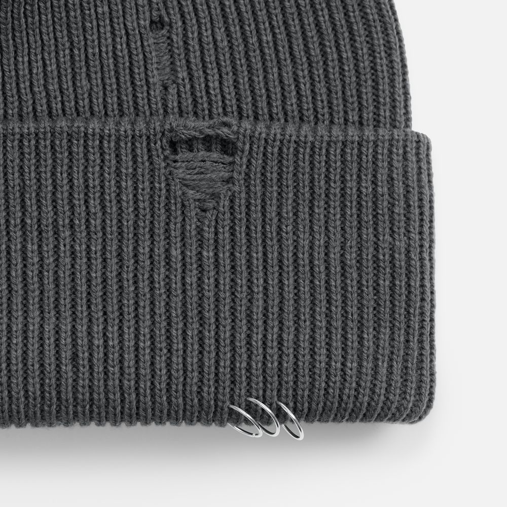 Шапка Ribelle — это практичная двухслойная модель из акрила, которая сочетает в себе уют с трендовым дерзким дизайном. Ее регулируемый отворот с рваным краем и металлическими кольцами в качестве украшений создает выразительный и необычный акцент. Благодаря универсальности и продуманной конструкции она станет стильным и функциональным дополнением гардероба.