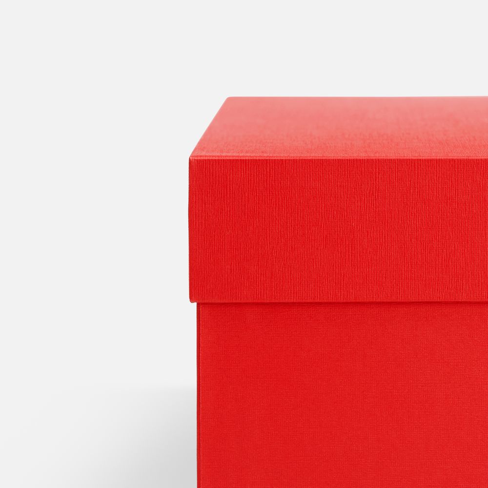Коробка изготовлена из переплетного картона, кашированного дизайнерской бумагой.