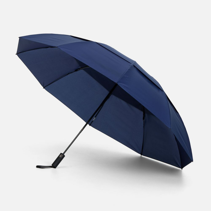 Зонт twoGether вне конкуренции: 10 гибких спиц для лучшей ветрозащиты, огромный двухслойный купол диаметром 130 см, который легко укроет двух-трех человек, и система обратного сложения для максимального комфорта.